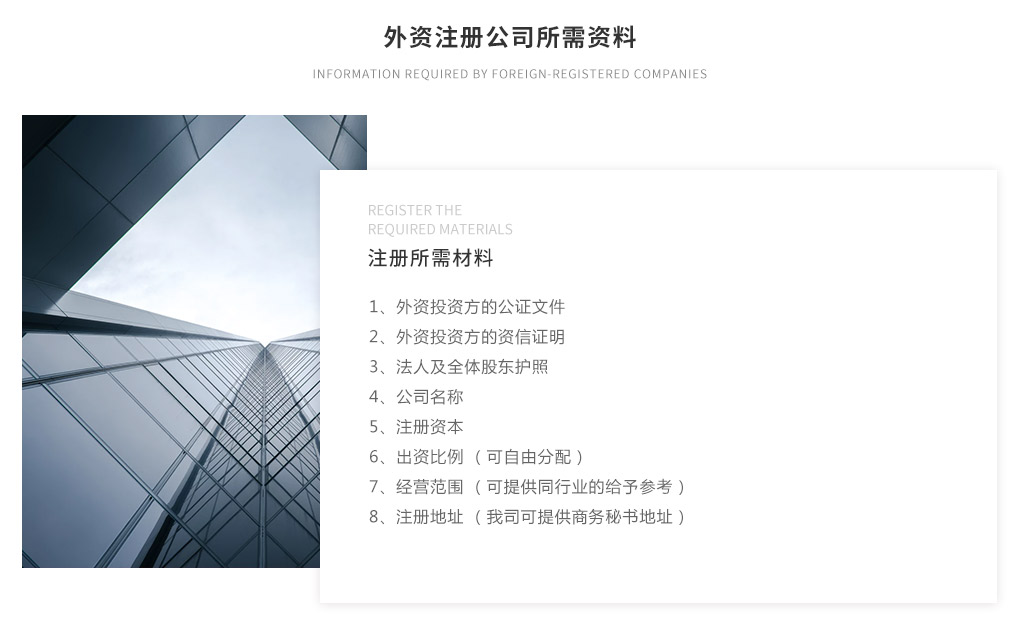 主页 > 中小企业服务 > 公司服务 > 外资公司注册